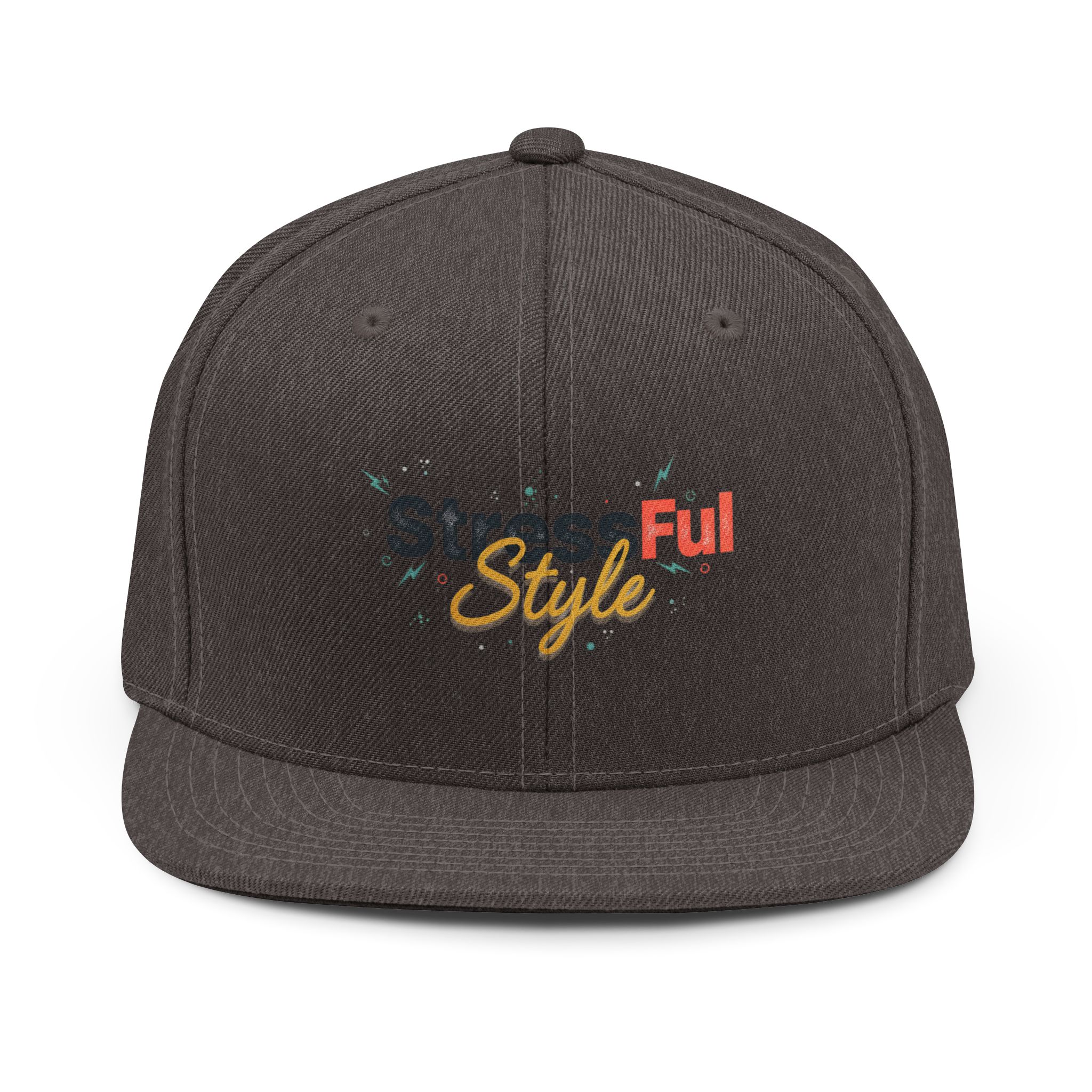 Stressful Style Snapback Hat — Retro Script Logo Cap